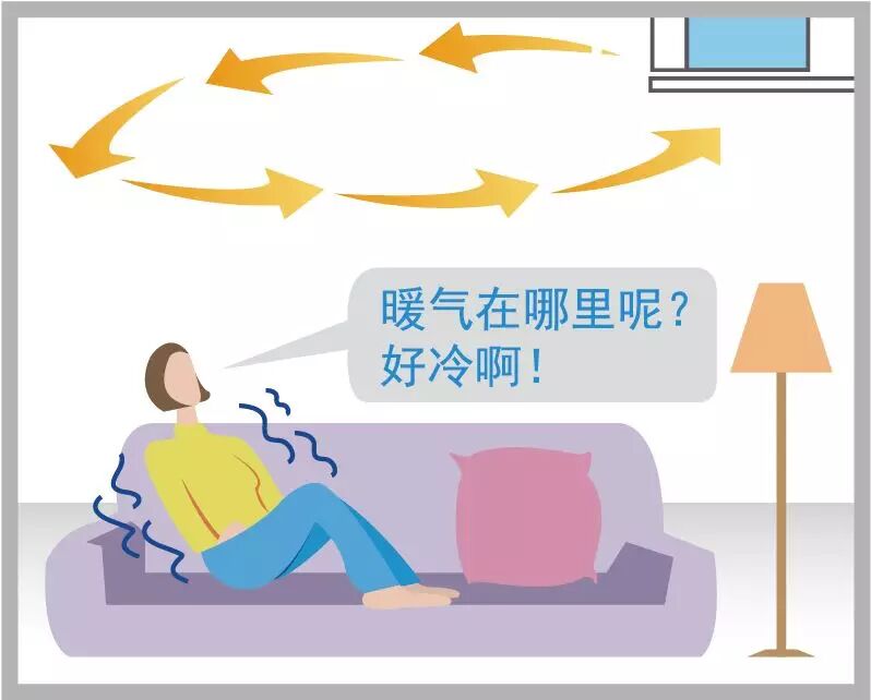 冬季制热时,比较轻的热气流聚积在天花板处,难以达到地面,往往会对空调的制热效果造成影响。