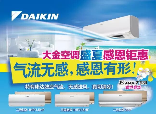 购买E-MAX 7系列挂壁机,即可获赠由大金售后提供的专业服务卡套装1份,价值约880元。